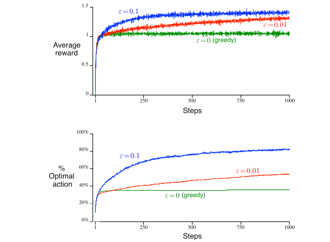 - $\varepsilon$-greedy: $Q_1(a) = 0$