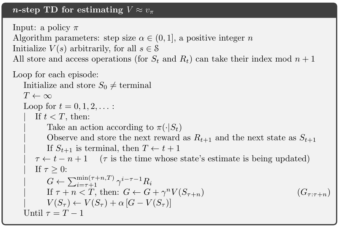 with $G_ {t: t+n} \doteq G_ t$ if $t+n \gt T$. The natural algorithm is then