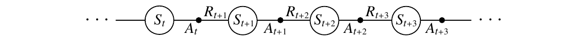 $$ \begin{aligned} v_ {\pi}(s) & \doteq \mathbb{E}_ {\pi}\left[G_ {t} \mid S_ {t}=s\right] \newline &=\mathbb{E}_ {\pi}\left[R_ {t+1}+\gamma G_ {t+1} \mid S_ {t}=s\right] \newline &=\mathbb{E}_ {\pi}\left[R_ {t+1}+\gamma v_ {\pi}\left(S_ {t+1}\right) \mid S_ {t}=s\right] \end{aligned} $$
