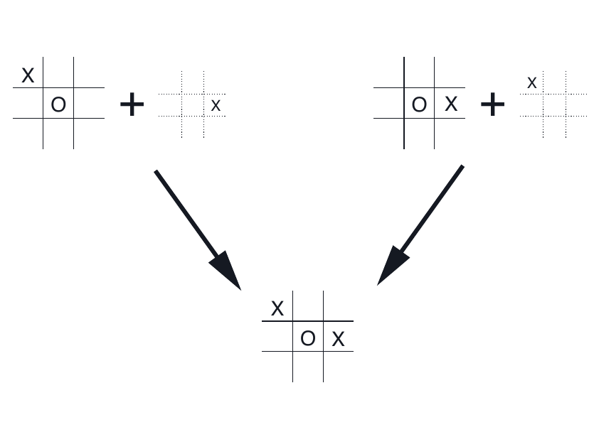 - 這個例子中,下面的結果都來自上面兩種落子順序。